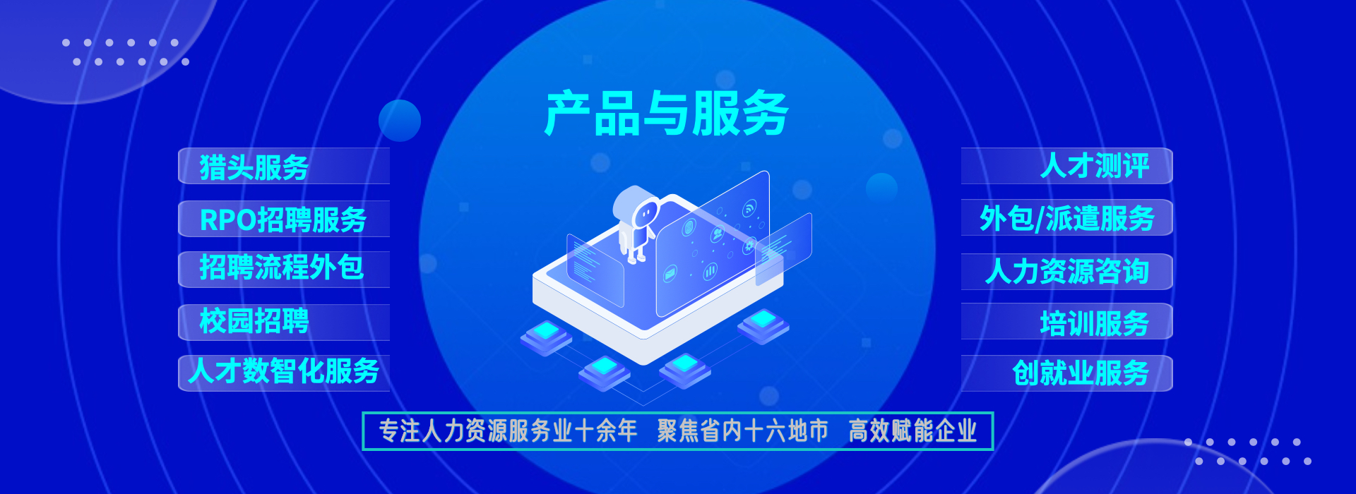 一站式服務(wù),降低企業(yè)管理成本 事務(wù)外包:人事事務(wù)外包,實(shí)習(xí)生招聘與管理外包 崗位外包:IT技術(shù)、財(cái)務(wù)/會(huì)計(jì)、行政文秘類和市場類崗位 項(xiàng)目外包:校園招聘外包、招聘流程外包、社交媒體運(yùn)維外包、設(shè)計(jì)創(chuàng)意外包 業(yè)務(wù)流程外包:物業(yè)管理項(xiàng)目外包、零售快消行業(yè)的營銷服 務(wù)外包、倉儲(chǔ)物流業(yè)的倉儲(chǔ)與配送外包、O2O地推營銷外包、 呼叫中心外包等